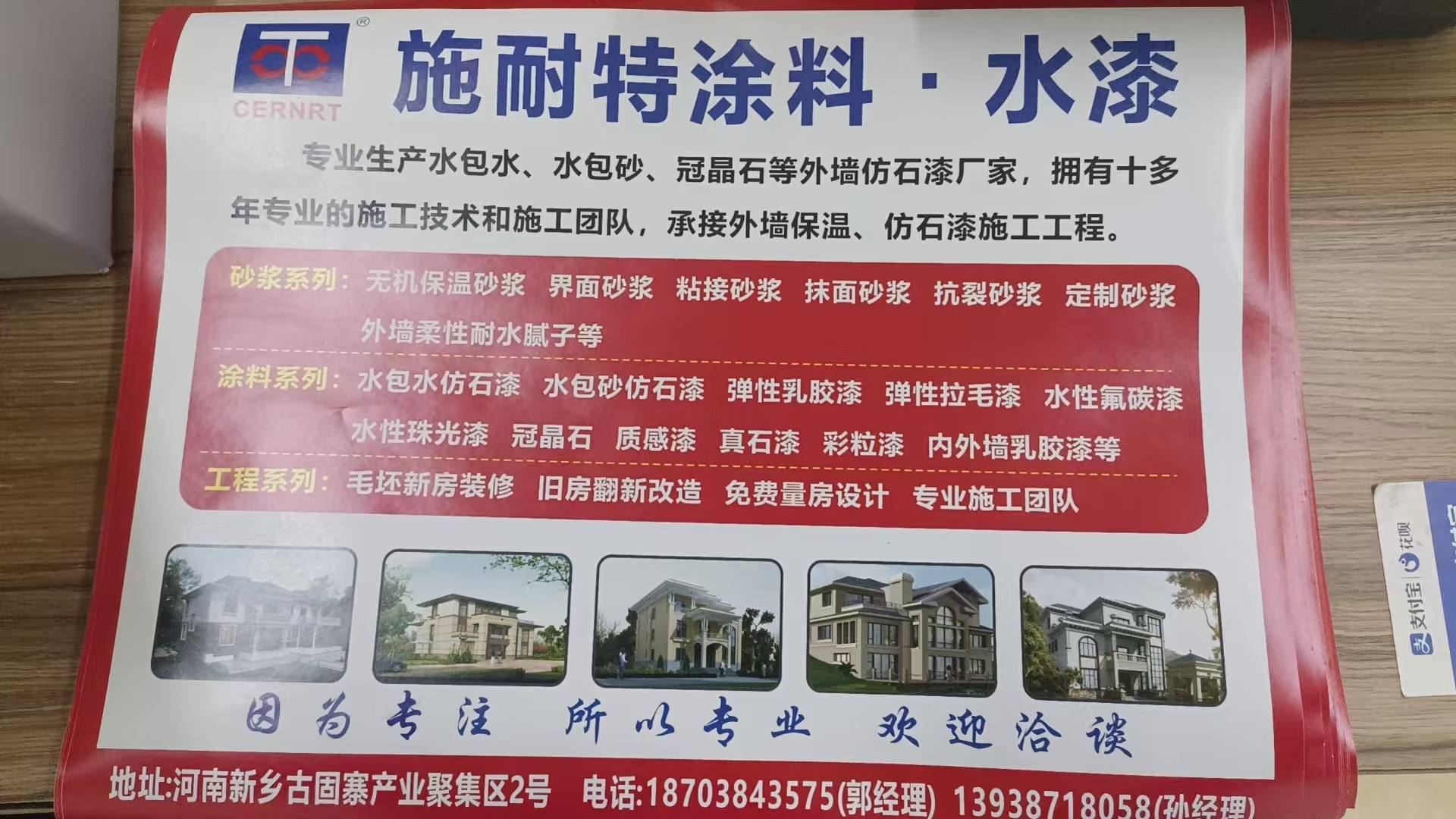 公司新增砂壁質感涂料、真石漆、水包水彩色巖片漆三大系列產品